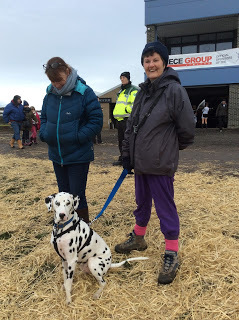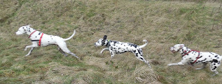 The weather was bright and cold with a little sun here and there and all went well. Tim took a little while to get used to so many other dogs, but soon got into the spirit of it though it seemed like every thirty seconds he stopped racing around and looked for me - if he didn't find me - oh panic - where is she? Most of them found every dirty puddle and hollow to splodge in, and there were lots. Some stayed very clean - fastidious Dalmatians.