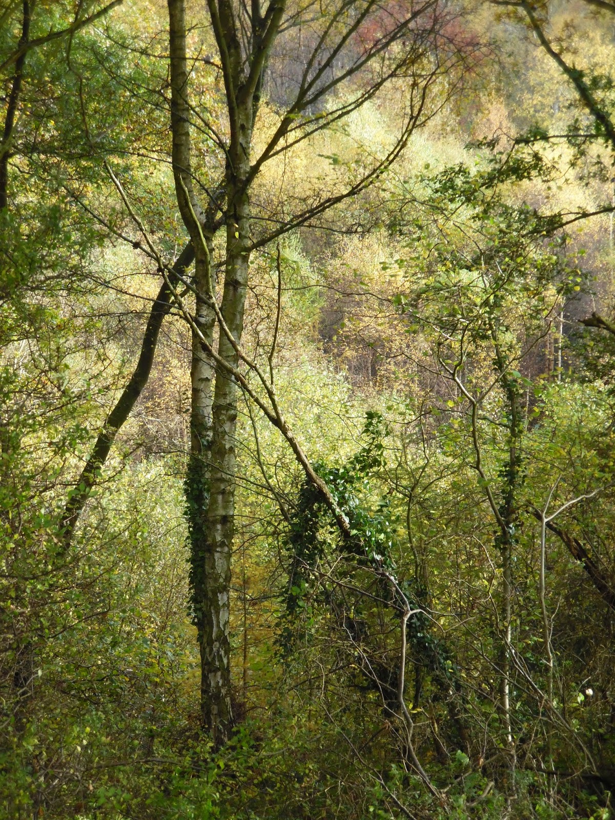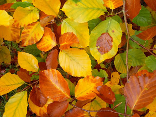 We've had rain and wind for days which means most of the leaves have disappeared now. They clog up the streams which are roaring down the valleys, scouring them clean after being dry for a good part of the summer.