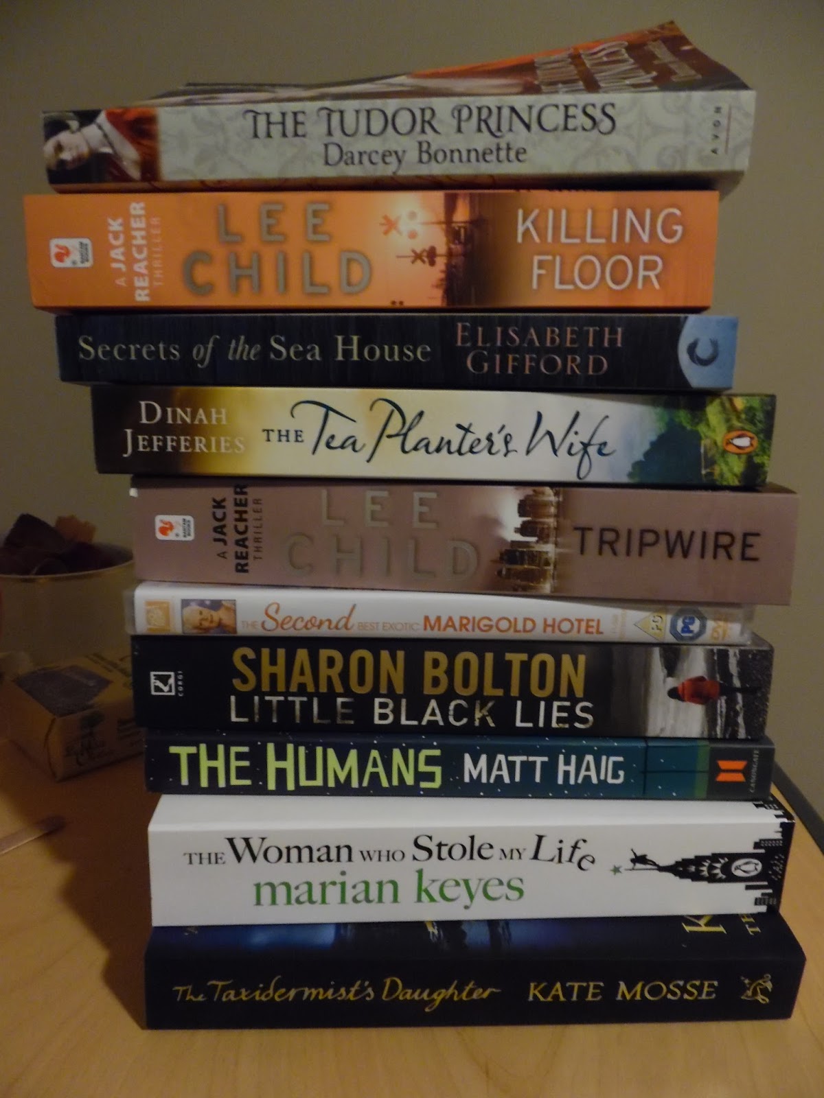 On the right - a pile of books - my selection and how I spent almost all of my Amazon gift card! Missing from this is a dvd of the Second Best Exotic Marigold Hotel and a couple of titles that are yet to arrive from a subsidiary company. One Ian Rankin title I bought for a penny!That's my Christmas reading sewn up and possibly for some weeks to come! I received the first Christmas Card today and attended a Christmas wreath making demonstration plus lunch at http://www.bradley-gardens.co.uk/ today. A very good lunch it was too, with Chicken in pastry with a glass of white wine, followed by vanilla brulee. The demonstration was very good but I'm not sure how much decoration I shall do. Perhaps a wreath for the front door - but it won't be as grand as the one made today - white roses and orchids went into the table centrepiece. I forgot to check and see if I still have some holly with its berries - the blackbirds may have nicked them all. Not that I begrudge them a few berries. I'll track some down while I'm out with Tim if necessary.