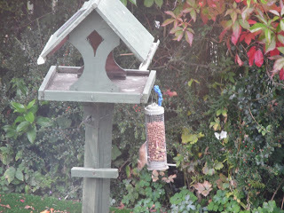 I took it through double-glazing. The last time I tried to open the window the mouse was gone in a flash! He lives under the sink-pond and no doubt shares accommodation with the resident frogs who inhabit said pond every spring, have orgies and produce hundreds of tadpoles. The level of nuts goes down very quickly, but it is not just the mouse; we have flocks of young sparrows and bluetits who have taken up residence in the garden this year - or if not our garden, then one very close by. The fly in in squadrons; one day they were closely followed by a sparrow hawk which crashed into the Virginia creeper never to be seen again. It survived, but I bet it got a fright.
