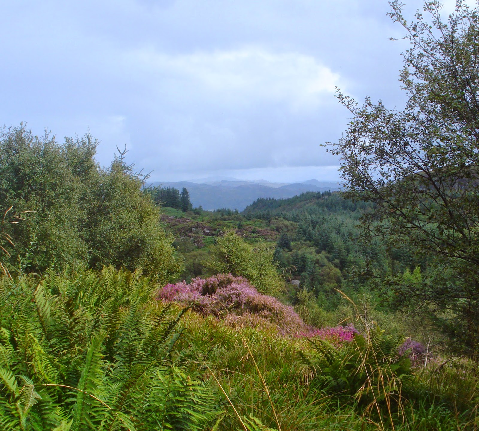 Just back from a couple of days away at Crinan Hotel. We were expecting cold rainy weather - so the forecasters said - and actually had brilliant sunny weather. It is amazing how variable weather can be in this little island of ours. Got well and truly bitten by the notorious Scottish midgie, too.We stopped at Dunardy halfway along the Crinan Canal to give Tim a walk. We had a lovely saunter through Foresty Commisssion woods and finally broke out of the trees and were rewarded with an ever expanding view. The higher we climbed, the better the view, so we kept on climbing! It was a gentle, curving climb. I don't want to give the impression I climbed something like Mt Everest, but it certainly had us breathing more deeply than usual.