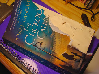 Tim really doesn't like JKRowling's book. He's had another go at it, and this time he has torn the cover right across to the spine. I shall have to get the Sellotape out and do a spot repair (Ha! Excuse the pun). But happily all the words are intact.I enjoyed the book and found it an absorbing read. I didn't guess the villain and was surprised when he/she was revealed. It's a neat set up for a series based on Strike and Robin's adventures. I wondered at the title until I reached the book's conclusion, and then all became clear - but to talk about it here would spoil the pleasure of those about to read the book, so I shall stay quiet.