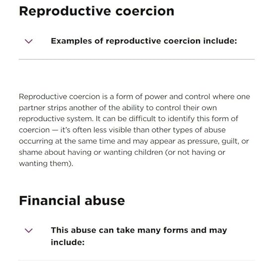 The National Domestic Abuse Hotline website lists nine categories of abuse, some of which have more than ten sub-categories. Let’s just say you may disagree with some of them.