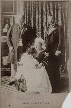 (public domain)Queen Victoria wrote to her eldest daughter Empress Frederick, “You rejoice as I do, indeed, and as the whole nation does, to the most wonderful degree, at the birth of dear Georgie’s boy.[…] As it is, however, it is true that it has never happened in this country that there should be three direct heirs as well as the sovereign alive.”1 He received the names Edward Albert Christian George Andrew Patrick David and would be known throughout his life as David. Just 18 months later, he was joined in the nursery by his brother Albert, known as Bertie, the future King George VI. This was followed by Princess Mary, later Princess Royal and Countess of Harewood, Henry, later Duke of Gloucester, George, later Duke of Kent and lastly Prince John, who would die in childhood.