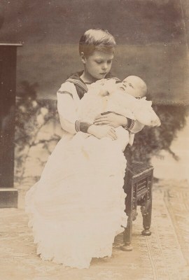 David holds his younger brother (public domain)In 1901, Queen Victoria died, and David’s grandfather succeeded as King Edward VII. His father was made Prince of Wales in November of 1901, and David was now second in line to the throne. The following year, a tutor by the name of Henry Hansell was employed for David and Albert. David later wrote, “He never taught us anything at all. I am completely self-educated.”3