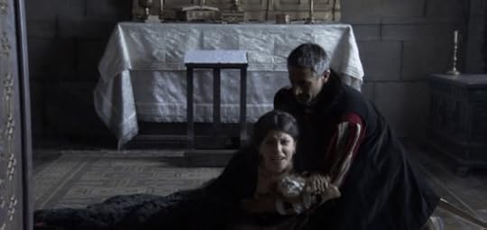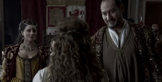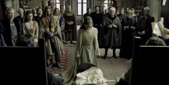 The scene as portrayed in Isabel (2011) (Screenshot/Fair Use)On 30 September 1467, “Queen Joan left her useless husband at the Alcázar and went, as agreed, to the town of Coca.”10 While at the fortress there, Joan learned of the death of her sister Eleanor; she had died following childbirth. Joan was essentially a hostage. She was later moved to Alaejos, and she was allowed to keep just four ladies with her. Henry briefly visited her there.