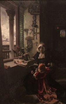 Catherine dressed in cloth of silver for the proxy wedding before reverting quickly back to black to see her mother. Charles left for Madrid, and on 1 January 1525, Catherine finally asked her mother to bless her marriage. The following morning, she ate breakfast, heard mass and made a secretive departure. Joanna was distracted by conversation and only later discovered that Catherine was gone. It was reported that she stood for an entire day and night in the corridor, gazing out of the window and then she “entered her chamber and took to her bed, remaining thus for two days; and no wonder, for this daughter was her solace.”7