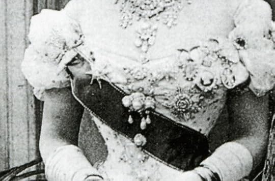 (public domain)The wedding brooch formed part of a parure given by the future King Edward VII to his bride, Alexandra of Denmark, as a wedding present. She wore the necklace, earrings and brooch on her wedding day. The tiara in the set was eventually bequeathed to Queen Alexandra’s second daughter Princess Victoria, who “disposed” of it.2