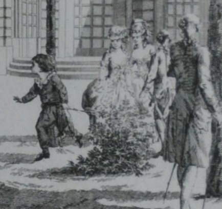 Henriette Campan later wrote in her memoirs, “A little village boy, four or five years old, full of health, with a pleasing countenance, remarkably large blue eyes, and fine light hair, got under the feet of the Queen’s horses when she was taking an airing in a calash, through the hamlet of St. Michel, near Louveciennes. The coachman and postilions stopped the horses, and the child was rescued without the slightest injury. Its grandmother rushed out of the door of her cottage to take it; but the Queen, standing up in her calash and extending her arms, called out that the child was hers, and that destiny had given it to her, to console her, no doubt, until she should have the happiness of having one herself. “Is his mother alive?” asked the Queen. “No, Madame; my daughter died last winter, and left five small children upon my hands.” “I will take this one, and provide for all the rest; do you consent?” “Ah, Madame, they are too fortunate,” replied the cottager; “but Jacques is a bad boy. I hope he will stay with you!” The Queen, taking little Jacques upon her knee, said that she would make him used to her, and gave orders to proceed. It was necessary, however, to shorten the drive, so violently did Jacques scream, and kick the Queen and her ladies.”1