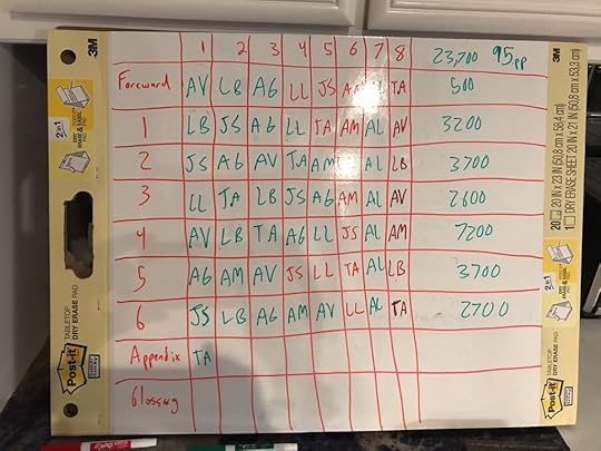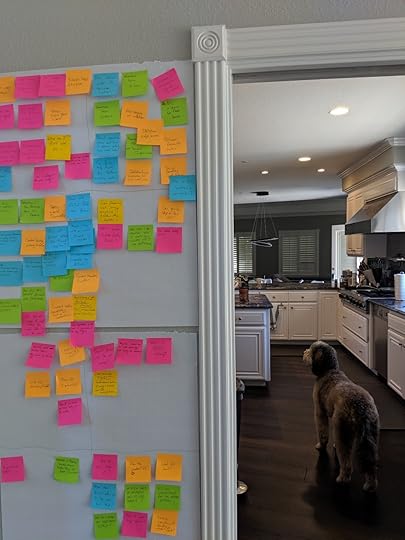 We put the chapter titles on bigger post-it notes and started discussing what the table of contents would look like. What sort of flow through these topics would help the readers? How could we get the reviews we wanted? What started as ten chapters were combined and shrunk to six chapters in an order that was both engaging and clear.