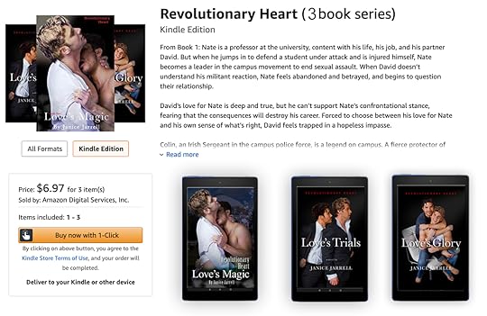 Colin and Joshua aren’t the only stars in Ms. Jarrell’s latest work. All six Revolutionary Heart men are featured. David and Nate get their own story (“Playing The Part”) and Trent and Jeff also get a piece exclusive to them (“Trent’s Triplets”).