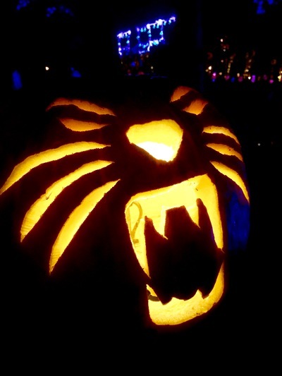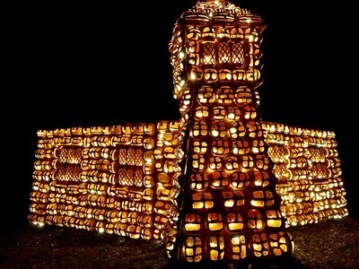 The Great Jack-o-Lantern BlazeEvery fall, Van Cortlandt Manor is transformed into a glowing beacon of unearthly orange light, lit by thousands of grinning pumpkins that make Ray Bradbury's halloween tree look like a candle flame set next to the sun. Thousands of hand-carved pumpkins lit by thousands of hand-lit votives crawl the expanse of this historic home, fashioned into everything from lanterns to carousels, to a giant spiderweb and the Headless Horseman himself--throwing a flaming pumpkin no less.This year I had the pleasure of meeting Cheryl Bernstein, one half of the two-person team that first introduced the Blaze to Hudson Valley fourteen years ago. Ms. Bernstein, a delightful woman who chatted with me for more time than I rightfully should have asked for, is the production coordinator for the Blaze, and the woman who singlehandedly carved an entire installation of funkins (as the festival makes use of both) with a Celtic Knot display. I should also mention that while Ms. Bernstein is clearly young at heart, she is no mere sprig of a girl, which makes her ability to hand-carve several dozen intricate knots ever the more impressive.