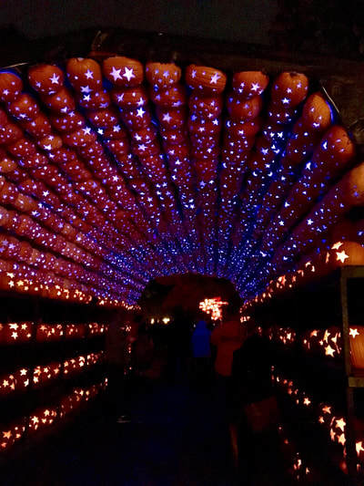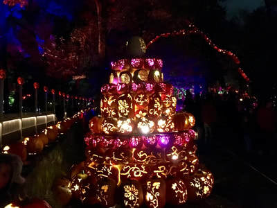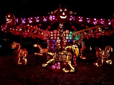 This year, according to Ms. Bernstein, the Blaze boasts 10k live pumpkins, lit by 50k votives. Twenty-five paid scoopers arrive at the site daily to scoop fresh pumpkins, a fraction of the total 2700 volunteers who participate each year in carving and lighting. Putting an event of this magnitude on is no small feat, and if you have the chance to visit I strongly encourage you to do so. My favorite of this year's new features was the carousel, crafted by one of the members of the original carouseling family. It actually spins.