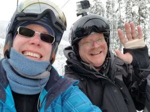 We drove off early the next morning under bright blue skies. The Colorado mountains are a joy to drive in good weather–they’re so beautiful! Unfortunately, the weather didn’t stay good, and the last few hours we were back in a snowstorm. Rather than driving straight through as planned, we stayed the night in Idaho. While the next day was still snowy, daylight made the rest of the drive much easier. We arrived without any further problems, happy to be home. While we love exploring and going places, fourteen-hour drives that turn into two full days are not any fun at all. Still, I’m happy we’ve had the opportunity to ski places we haven’t skied in many years, to see old friends, and ski with family!