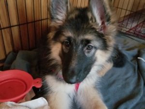 Isn’t she adorable? She’s twelve weeks old and a bundle of energy. Zoe loves tug of war, chasing balls, digging and playing in the water. The water thing surprised us–none of our other German Shepherds liked water at all.