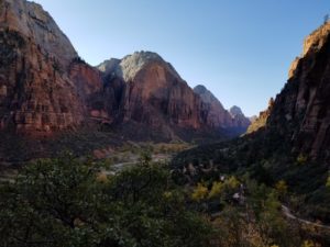 After I returned, we hiked along the West Rim trail for a mile or so. Still lots of people, but not nearly so crowded. Pictures don’t really do justice to the huge scope of the Zion Canyon.