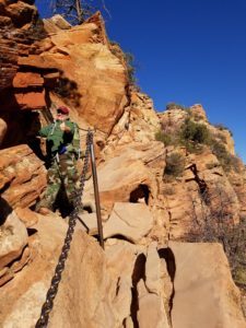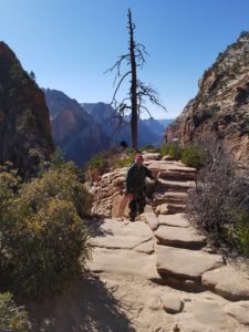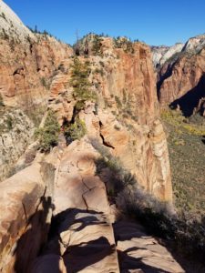 To shorten the drive home a little, we spent a day at Zion National Park. Neither of us had ever been there and the crowds were much lighter with kids are in school. Kolob Canyon was closed, and it was a little cold for the Narrows (hiking in water), so we hiked Angels Landing.