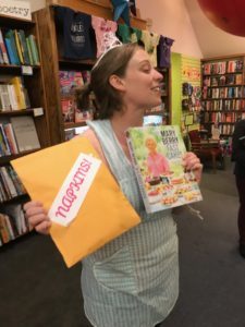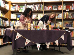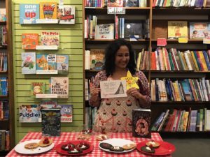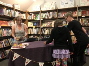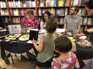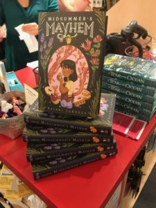 On a rainy Monday night in September, I had an amazing visit to Red Balloon Bookshop in St. Paul, MN, where I participated in a “Great Baking Book Event,” inspired by my middle grade novel, MIDSUMMER’S MAYHEM, and (of course) the Great British Baking Show! I talked about my story, read a little from my book, and then took part in a high-stakes, high-pressure, incredibly fun “Technical Challenge,” competing against fellow middle grade author, Heather Bouwman! A couple of young readers judged our creations, and I was (very narrowly!) crowned STAR BAKER! This was followed by a madcap scavenger hunt to find the napkins that some fairies had stolen, and then a book signing! A wonderful time was had by all! This is an absolutely astounding independent bookstore, and if you are ever in the area, you should pay a visit!