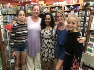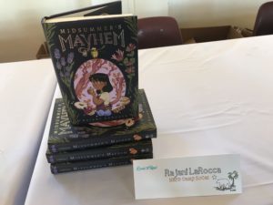 I went to Cape Cod for TWO fantastic MIDSUMMER’S MAYHEM events in the same evening! First, I visited the picture-perfect Eight Cousins Books with fellow MG authors Susan Tan and Jennifer Blecher, where we had a lively discussion and played my new favorite game, “That’s My Book!” where the lovely bookseller read quotes from our books and others. Next, I headed to the Marstons Mills Public Library with Susan, Kate Conway, MarcyKate Connolly, and Jim Hill, where we talked about writing with some awesome teen writers. There really is nothing better than Cape Cod in the summer!