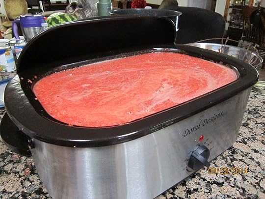 Tomato Soup for Preserving and Bottling14 quarts of tomatoes, blanched*, peeled and quartered7 medium onions, chopped1 bunch of celery, chopped (about 10-14 sticks)1 bunch of parsley3 Tbs salt8 Tbs sugar2 Tbs pepper3 bay leaves1 cup + 2 Tbs flour14 Tbs butter, melted2 Tbs lemon juiceProcedure:Blend tomatoes, onions, celery and parsley in blender or food processor.Cook until tender and thickened.Add salt, sugar, pepper and bay leaves.Make rue (paste mixture to thicken with): Combine flour, melted butter, and some of the juice from cooked tomatoes until it can be poured. Mix into tomato mixture.Bring just to a boil.Remove bay leaves.Add lemon juice.Boil lids and sterilize bottles.Pour tomato soup into hot bottles.Wipe rims, top with hot lids and rings.Hot pack for 50 minutes or do in pressure cooker at 13 lbs for 20 minutes. (Check times for your area.)*Blanching: 45 seconds to 1 minute in boiling water.