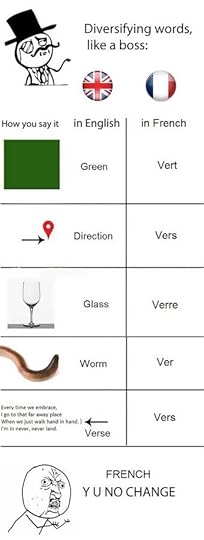 Ok, so homophones are words sharing the same sound but with different spellings. Si mon tonton tond ton tonton, ton tonton sera tondu. – If my uncle shaves your uncle, your uncle will be shaved. No, this isn’t your regular tongue twister, but a basic French sentence that has different words. Like, you will find vert as green, verre as glass and vers as towards being spoken as “ver” though their meanings and spellings are entirely different!( So much for decreasing the confusion in a language!)