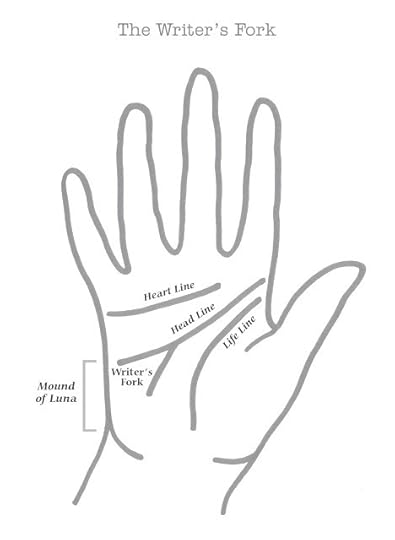 "Palmistry (cheirology)proponents claim that if a palm has a tassel-like fork at the end of the HeadLine on the mount of Luna, the person possesses creative ability with words.This "Writer's Fork" shows that you are versatile, curious, and inventive.The deeper into Luna the Head Line ends, the more frequently the person willretreat into imaginary worlds. The wider the fork, the more adaptable andresourceful you are." Excerpt from Relaxing the Writer