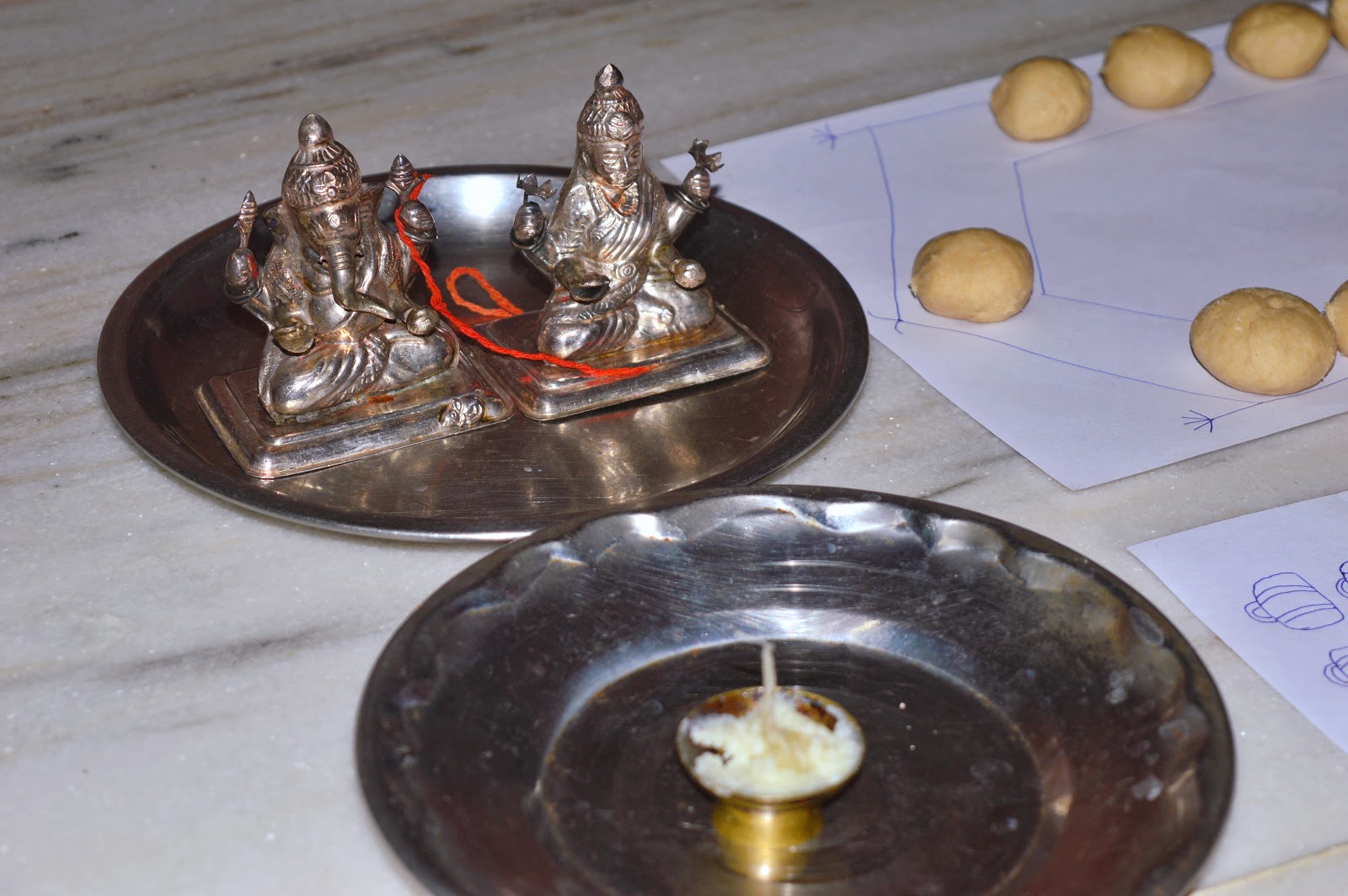 While on Badi Diwali, Rice Puffs(Kheel) and Sugar Bubbles (Batashe) are offered on the name of former.
