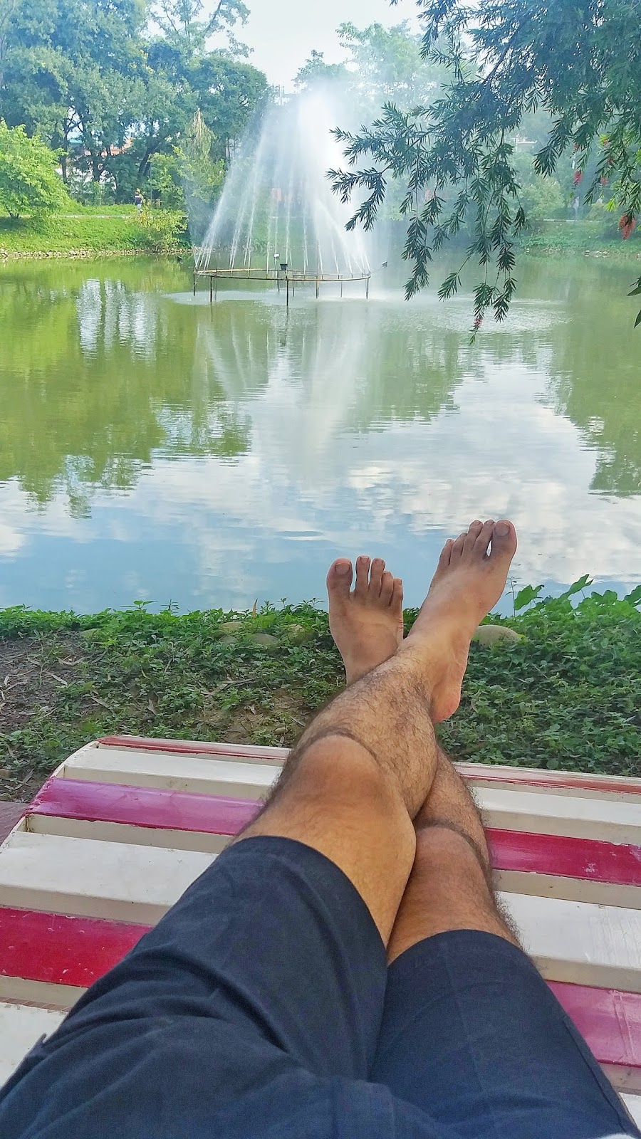In the Air Force Colony Lake, You'll be able to find that kind of ambiance. You'll find different benches and Lounge chairs to sit on.