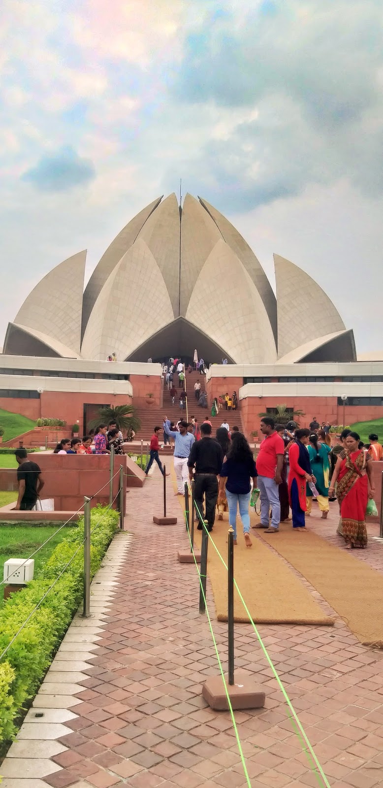 I recently made my first sole travelling expedition which was completed successfully.The two famous temples of Delhi which you must visit are Kalkaji Temple and Lotus Temple.The nearest metro station to both of them is ‘Kalkaji Mandir’ Metro Station. Also, I had my first metro ride yesterday. I got my metro card as well.Kalkaji Mandirhas a special place in our Hindu History as well. The mention of this place can be found in Mahabharata.It is believed that one who visits any Devi Temple is supposed to visit the temple of Bhairav as well. But when I visited, Bhairav Temple was closed.There is a street market en-route the temple, so you can buy the prasad there. They’ll also guard your shoes and wash your hands if you buy from them. The present structure of the temple is believed to have been built by Marathas and a part was built by a courtier of Mughals.The Darshans are really beautiful. The temple has white stone walls and pillars. The idol of the goddess is heavenly as well. Outside the temple, in the street market, I had my lunch (Chole Bhature). The restaurant was specialized to make food without onion and garlic. I too don’t like onion and garlic. I can’t hold my belches if I eat so.That’s the reason why the food was tasty.