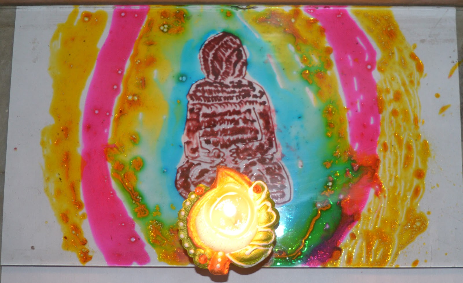 I used the glass painting I made as rangoli. I've named it 'Aura'.
