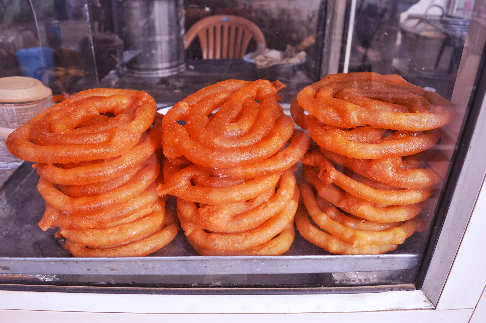 Cot at a DhabaNext we stopped at Gohana, which is famous for its Jalebas. Jalebas are big jalebis each of which weighs 250gm. It was invented by Maturam Gupta in 1958. From that time, Jaleba has gained even international fame. Every halwai in Gohana makes Jaleba and honours himself as a disciple of Maturam.