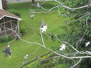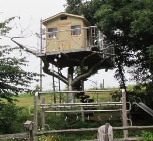 Along with the old, we were introduced to the new. New rooms indoors, a new play area outdoors. And a most unusual tree house. Father and son had merged talent and imagination to build not only the tree house, but the tree itself! With a welded trunk and metal leaves, it looked like something from a futuristic fairy tale.