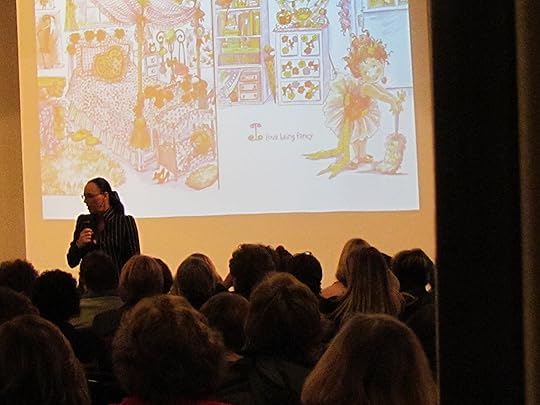 In an auditorium crowded with book-lovers of all sorts, Robin shared with humor her not-so-surprising transition from ballet slippers to – well, um – ballet slippers. Her journey included being a copy artist (in which an illustrator emulates the style of another for the purpose of creating a sequel) and creating a series of patriotic books with Lynne Cheney.