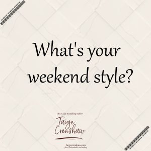 It goes according to my mood. Mostly I like to relax on weekends. So I’m usually in comfy clothes and curled up in my chair reading and/or watching movies/TV shows.