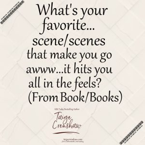 Let’s talk about your favorite book/books! Share with me ~ Give author name, book title/titles and scene/scenes.