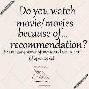 “Yes!!!! Ummm….I have so many. Ohhh…I’m curious about your answer! Give the movie title and series if applicable.