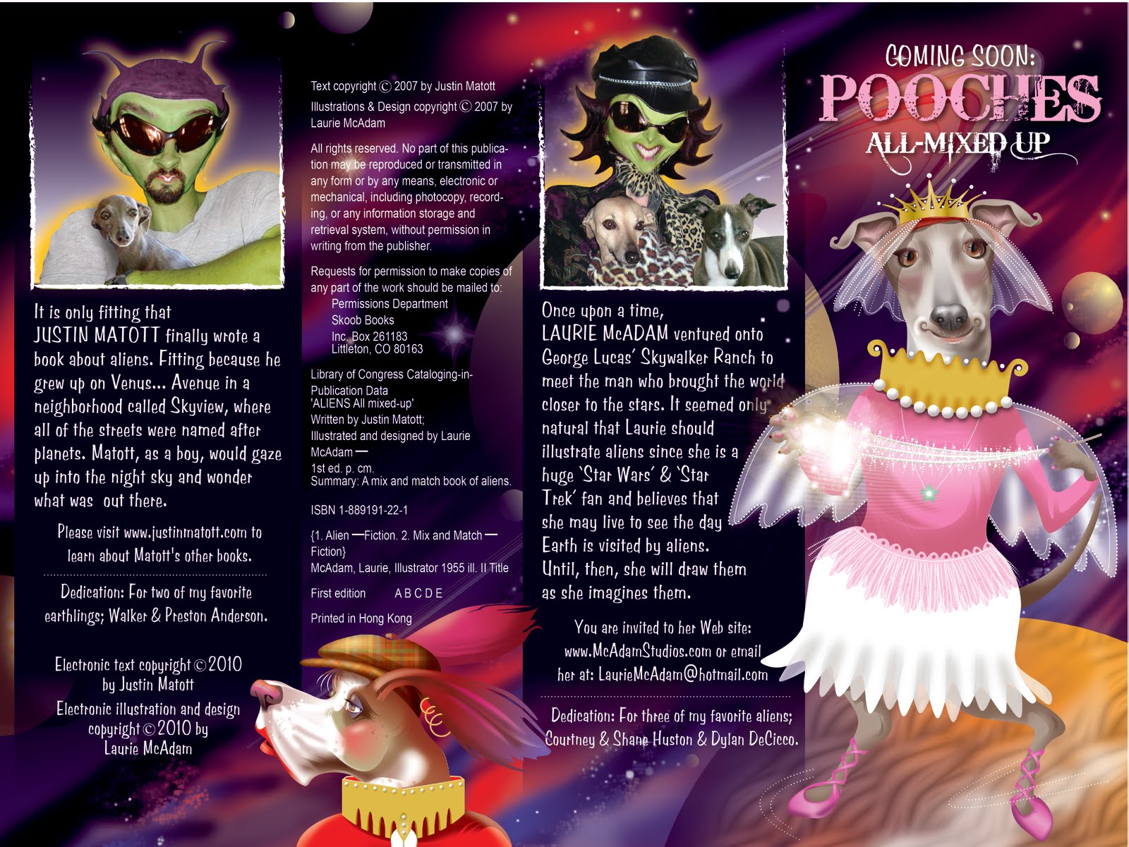 The hardcover book has 1728 different combinations of aliens with a tri-cut feature that allows the reader to change top, middle and bottom. The iPad book will allow the reader to slide the aliens in 1728 combinations as well. "A PERFECT iPad application!"