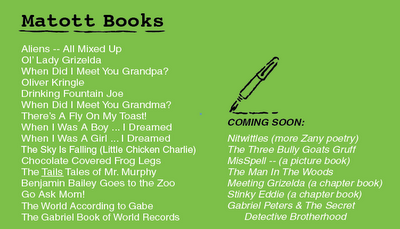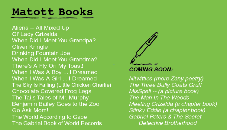 Summer Warehouse Clearing Out Sale! The warehouse will soon enough be buzzing with excitement as three titles will be rolling in late August. One is the third book in Matott's "GP" (Gabriel Peters) series as well as a truckload of reprinted, revised editions of When I Was A Girl... I Dreamed and When I Was A Boy... I Dreamed. Therefore, WE NEED ROOM and to inspire your readers -Matott's titles for a limited time (until July 1, 2010) will be available to you at only $11 per copy (titl...