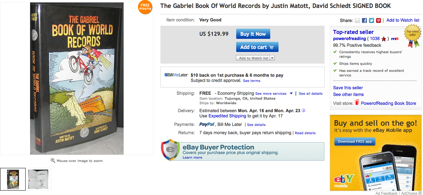 You can get this book signed on my website for list price or you can get it on ebay for this price... You decide. This is a current ebay listing, just not right!