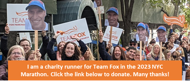 In 2023, I will be running for Team Fox again. You can donate to my New York City Marathon campaign ( click this link ). I could use your support. If you share the passion that The Michael J. Fox Foundation (MJFF) and I have for finding a Parkinson’s cure please consider contributing. All donations are meaningful and greatly appreciated.