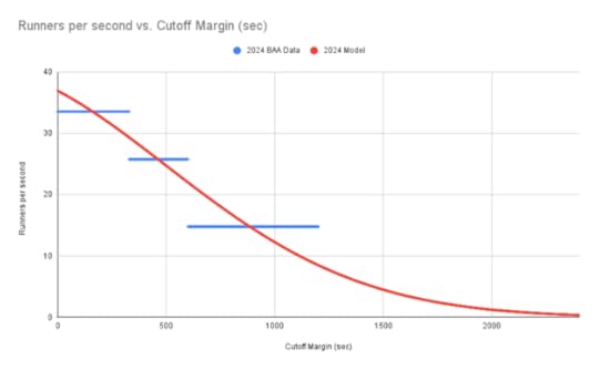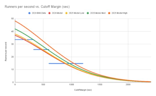 Hence, despite trends suggesting a substantial increase in cutoff time, my current estimate is more modest. Right now I have the BIB in the range of 312 to 359 (5:12 to 5:59).
