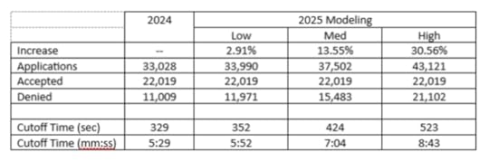 My earlier posts described the explosive trend in BQ’s this qualifying period, which led me to predict a longer cutoff time for 2025 than 2024’s. My new analysis changes the story a bit.