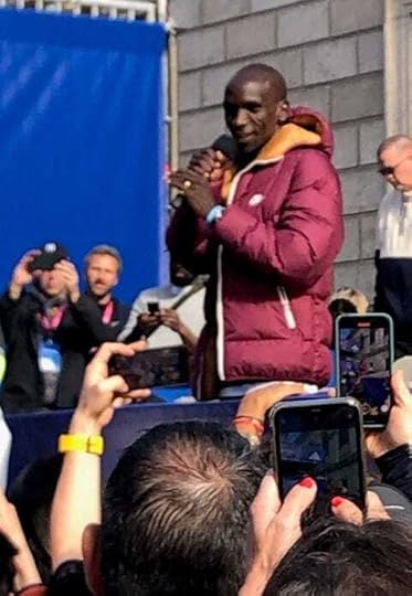 Eliud Kipchoge addressing the faithful (Suzanne Barron photo)I attended some of the events but decided to invest a lot of my time into resting up for the race.
