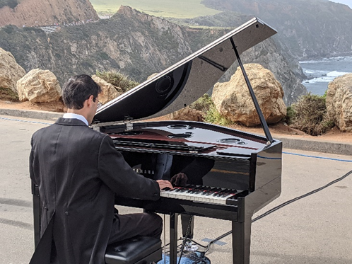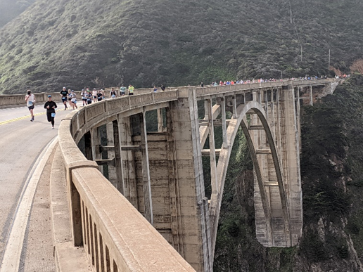 The Bixby Bridge on California Highway 1 (photo by the author)Nonetheless, besides the scenery, there were other pleasant diversions as runners made their way north. At mile 11, the Taiko Drummers banged out a virtuoso cadence and at mile 13 Michael Martinez was set up with a Yamaha grand piano to play a classically stylized version of Billy Joel’s Piano Man with enough amplification to allow runners to enjoy the music well before they came upon the piano.