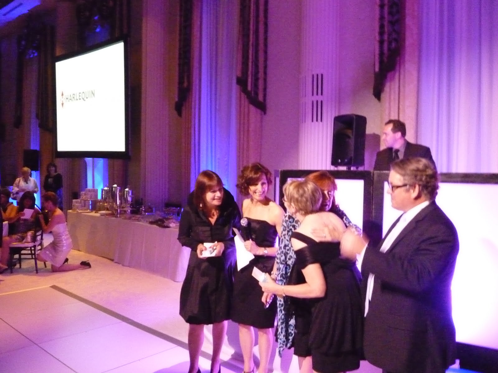 Back in August (or was it July?) I attended the Harlequin black and white party at the fabulous Waldorf Astoria hotel in New York. It was here that I received a Tiffany trinket for having published 75 books. Yay! I even bought a black dress for the occasion - though there is still a part of me which rebels at being told what to wear!But for once I capitulated and followed the dress-code, buying a dress by a Canadian designer which one of my American author friends informed me was called an Opera Coat. Lots of the fabulous women who attended my course at the Watermill in Tuscany, kept asking to see a photo of said dress.So here I am, striding across the ballroom while wearing it.
