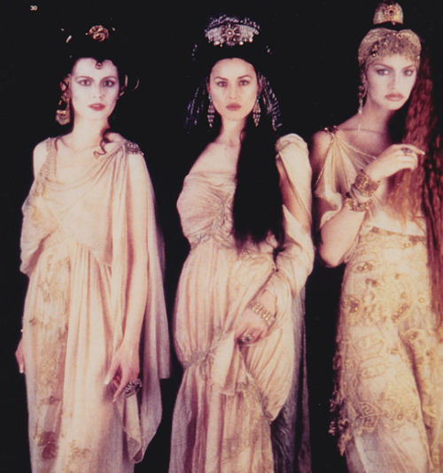 Florina Kendrick, Monica Bellucci, and Michaela Bercu behind the scenes of Dracula directed by Francis Ford Coppola, 1992