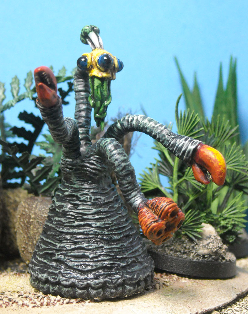 Also sharing with Snippet SundayThe tall, slender ghost's long, blond hair extended to the mid-back area of his black trenchcoat. The Yithian possessed a conical body made of a rigid, rubbery material. It had two great pincers extending from the shoulder area, and two long neck stalks. One of the neck stalks terminated in a round yellow head with three eyes, small, flowerlike ears, and a multitude of hairlike tentacles. The other neck stalk terminated in a cluster of four red trumpet-like projections. The Yithian slid like a snail on the great foot at the bottom of its conical body.