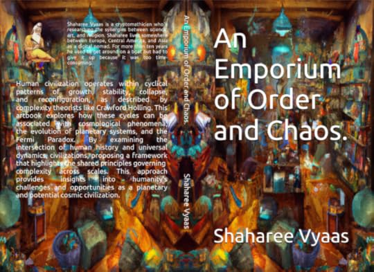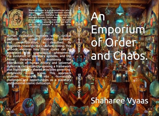An Emporium of Order and Chaos. Paperback – February 11, 2025 – by Shaharee Vyaas (Author). Paperback : 195 pages, ISBN-13 : 979-8310409880, Item Weight : 12.5 ounces, Dimensions : 6 x 0.46 x 9 inches, price $39.99.This publication is an invitation to further explore the theme of Mystic Cyclical Synthetism that runs as a red thread to all my literary and other artistic endeavors. More information can also be found on my website http://www.maharajagar.com.