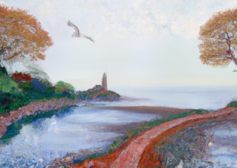 Past the original dwelling of Eve and Adam, the river extends from the curve of the shore to the bend of the bay, leads us through a conveniently traversable village of recurrence back to Howth Castle and its surrounding areas.