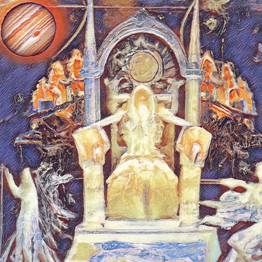 Neptune. Mixed technics on canvas 45 x 45 cm by Shaharee Vyaas (2023). Collection Civilization and Cosmos part 10The great Green Tsar (by Pushkin?)